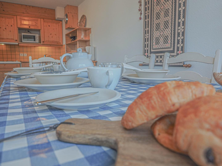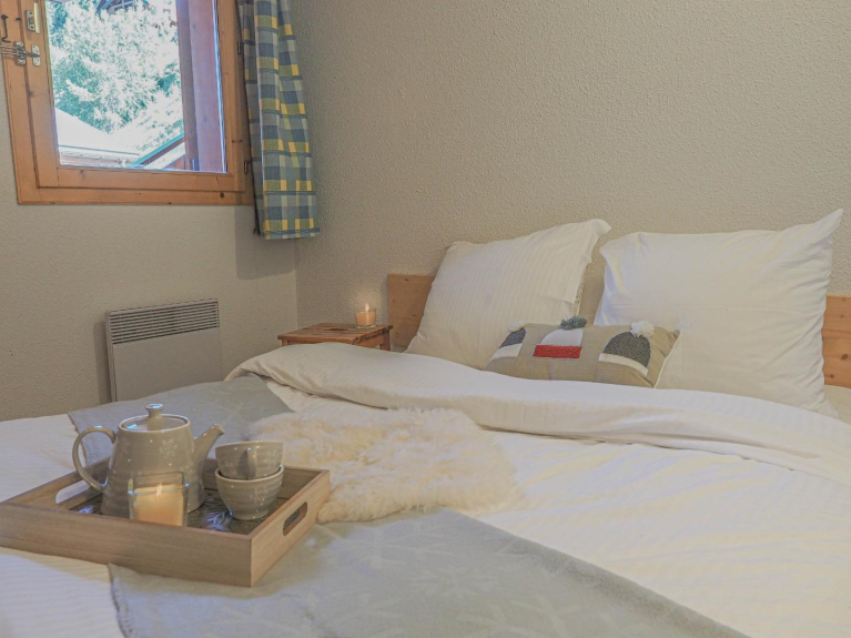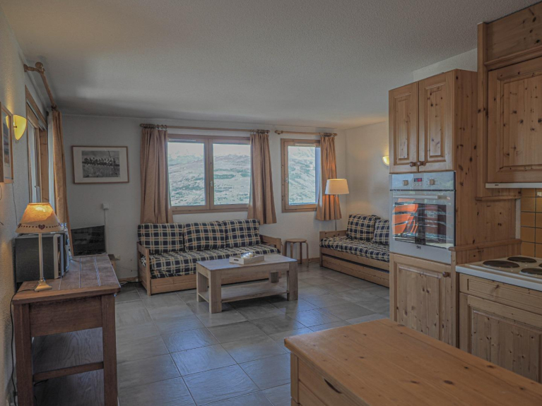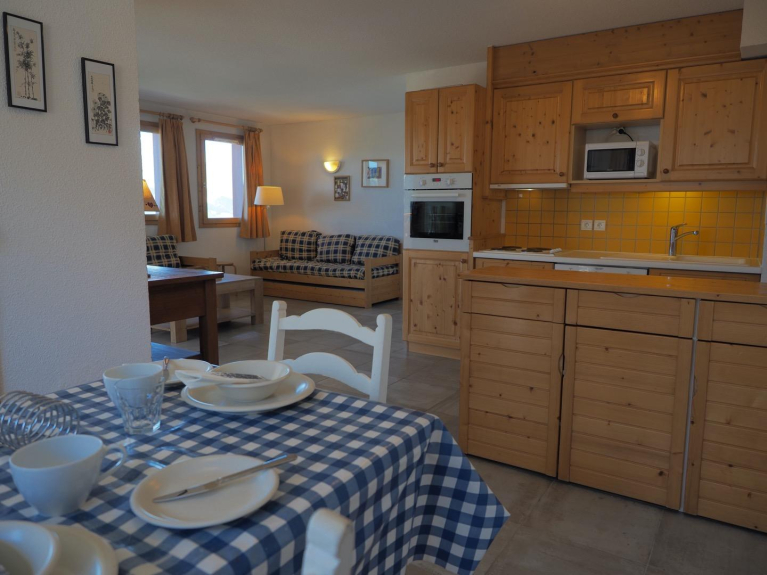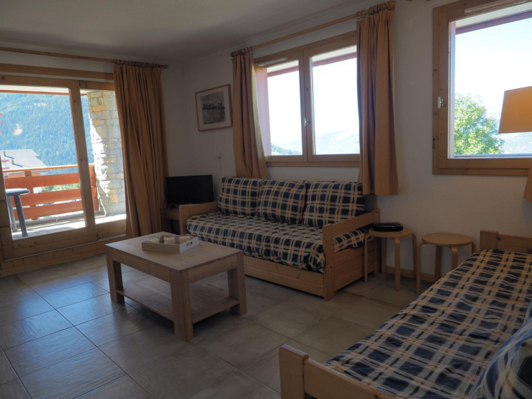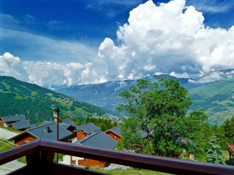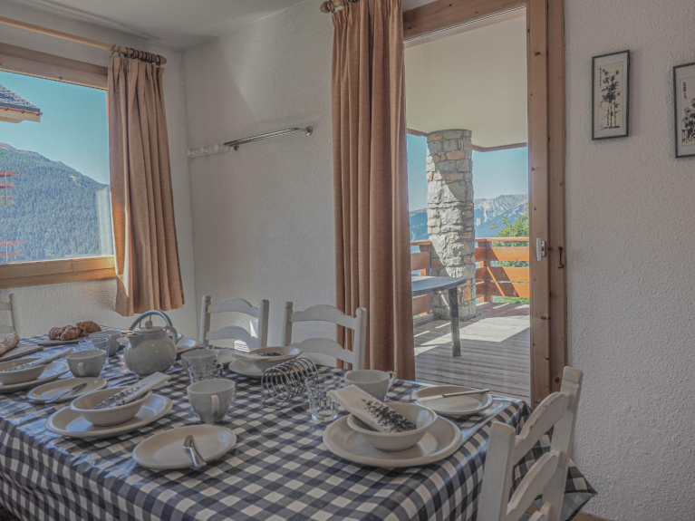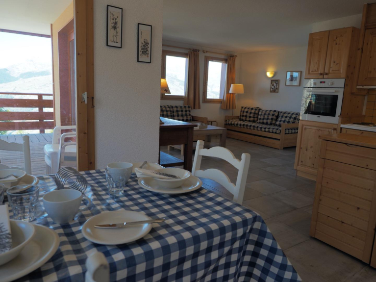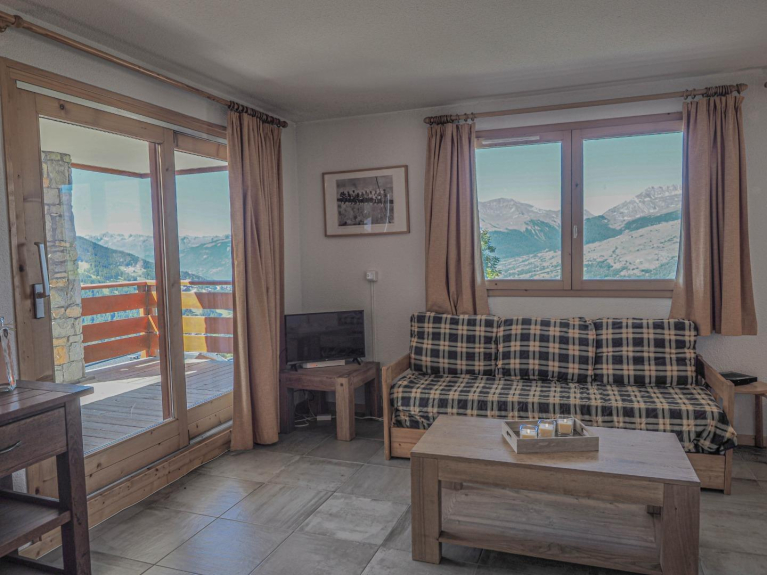 El piso 3, Les Epilobes, tiene vistas al valle de la Tarentaise desde su gran balcón y está a menos de 200 metros del centro de la estación y de los remontes.
