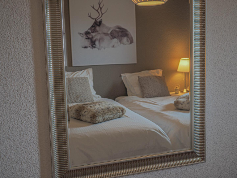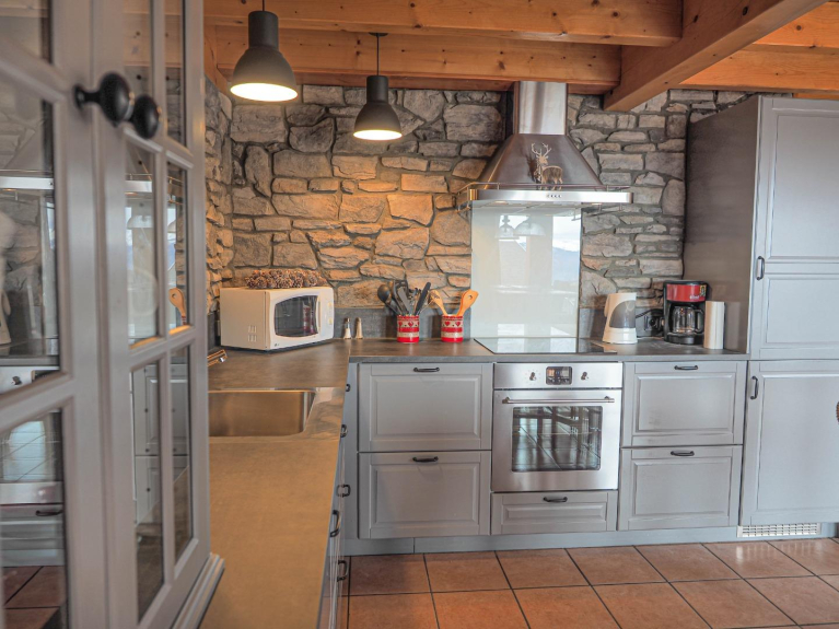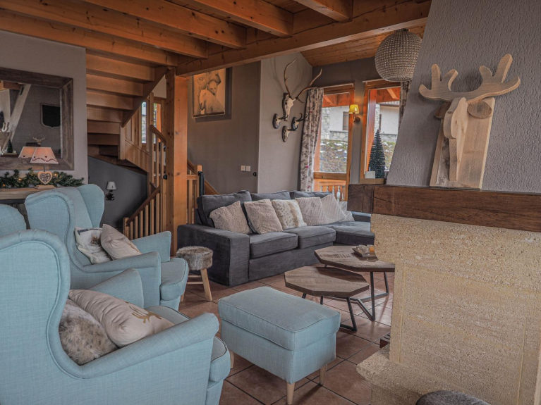 El amplio salón con sofás y sillones, chimenea de leña, satélite francés y holandés (muchos programas están en inglés con subtítulos en holandés), TV y DVD es el lugar perfecto para relajarse con los amigos después de un día en las pistas. El pabellón de caza cuenta con 3 balcones en diferentes niveles para aprovechar al máximo las espectaculares vistas.