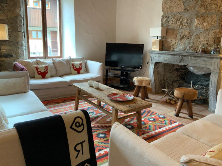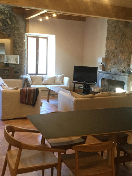 En la planta baja hay un gran salón con chimenea, una cocina de 40 m2, un dormitorio y un baño.