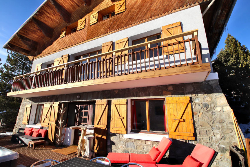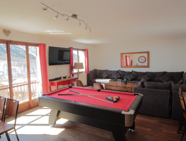 Afincados en los Altos Alpes, y grandes amantes de nuestras montañas, alquilamos 10 chalets en Montgenèvre y Vars, con capacidad de 12 a 24 personas. En este anuncio presentamos nuestro chalet La Soldanelle, de 240 m² para 16/18 personas, orientado al oeste, situado en el lado sur de la estación.