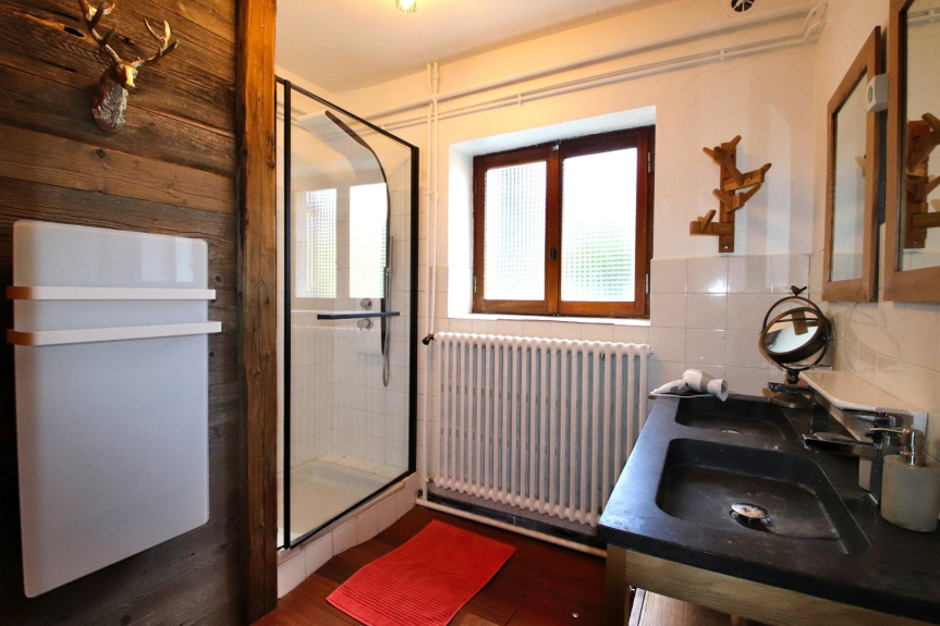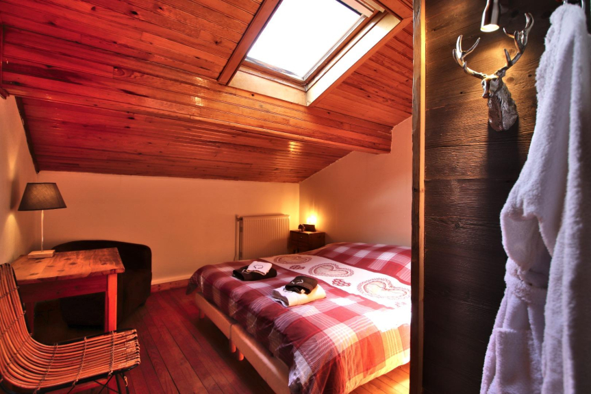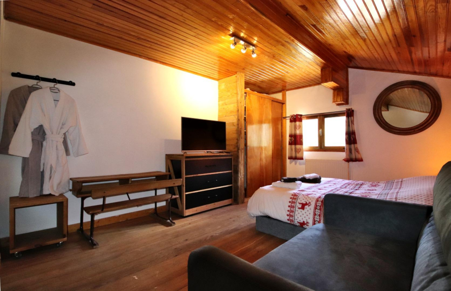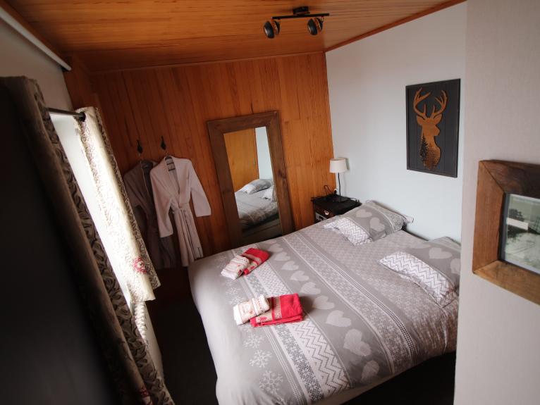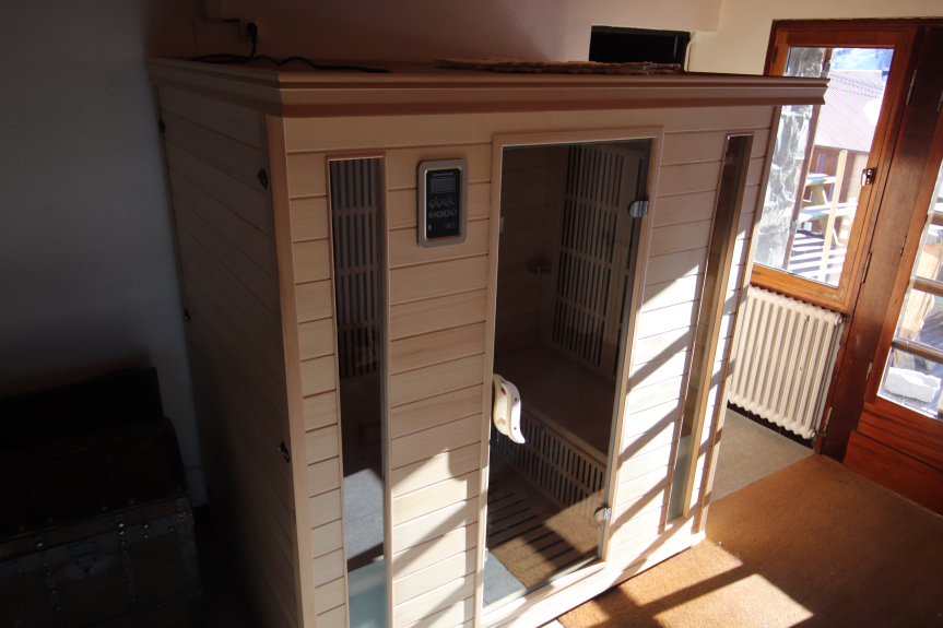 El chalet tiene 3 plantas. En la planta baja encontrará la sala de cine, 3 habitaciones dobles, la sauna radiante y 1 cuarto de ducha con WC separado. Tiene acceso a la gran terraza donde podrá disfrutar del sol durante todo el año. El solárium le permite disfrutar de la belleza de las montañas circundantes, ya sea tumbado en una tumbona para conseguir ese bronceado imprescindible de las "vacaciones de esquí", en la mesa tomando un café o en bañador en el jacuzzi climatizado a 37°.