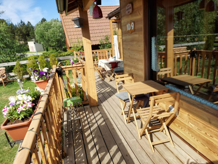 Chalet de madera, con orientación sur, 90 m2, con capacidad máxima para 9 personas. WIFI.