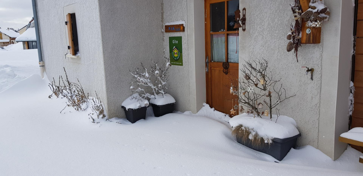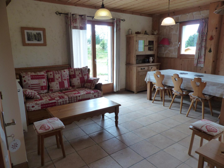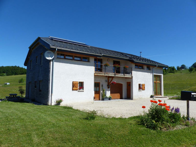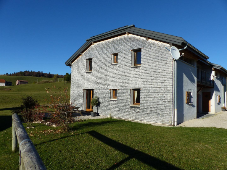 Etiquetado Gîtes de France 3 épis, situado en Lajoux, (4km de Lamoura), 1140m de altitud, frente a la Haute Chaîne des Monts Jura.