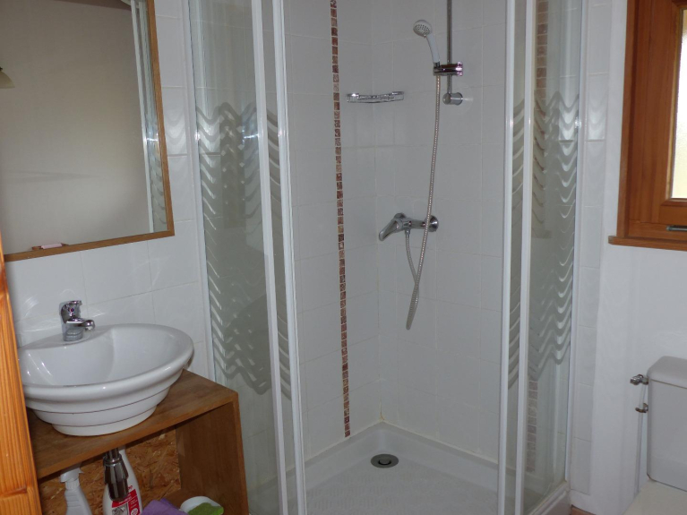 Cada habitación está equipada con un cuarto de baño con lavabo, ducha e inodoro.
