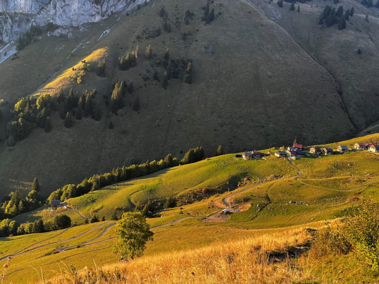 Puede aparcar su vehículo en el aparcamiento de abajo... y disfrutar de la vida real de los pastos de montaña.