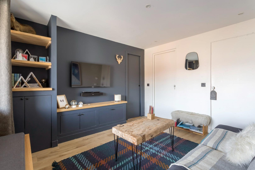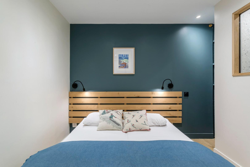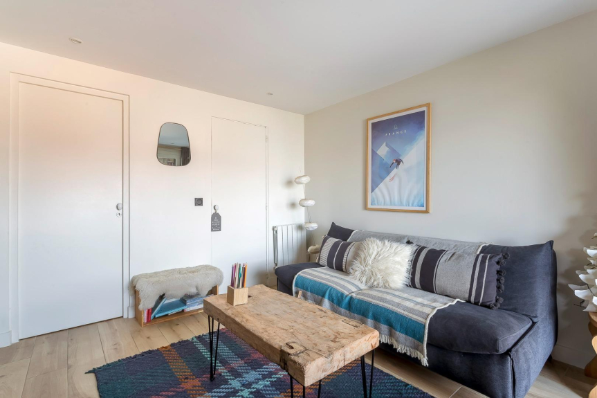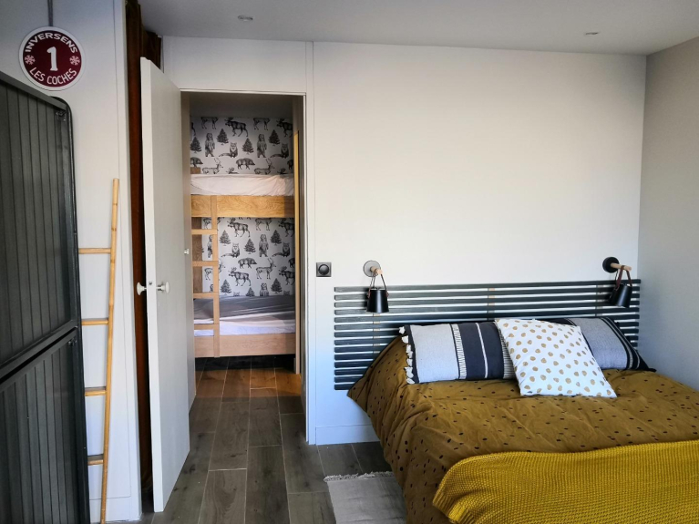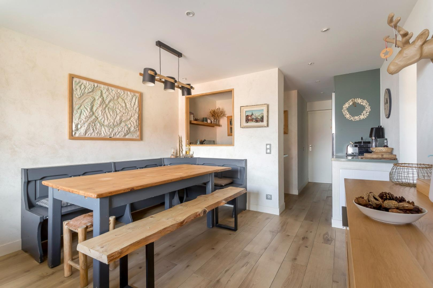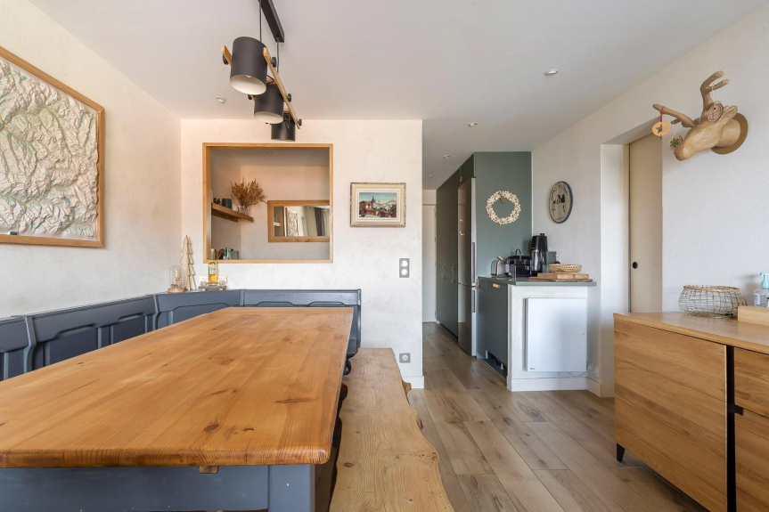 Precioso piso renovado, con capacidad para 10 personas, en un complejo familiar, tranquilo, al mismo nivel y con vistas al Mont Blanc.