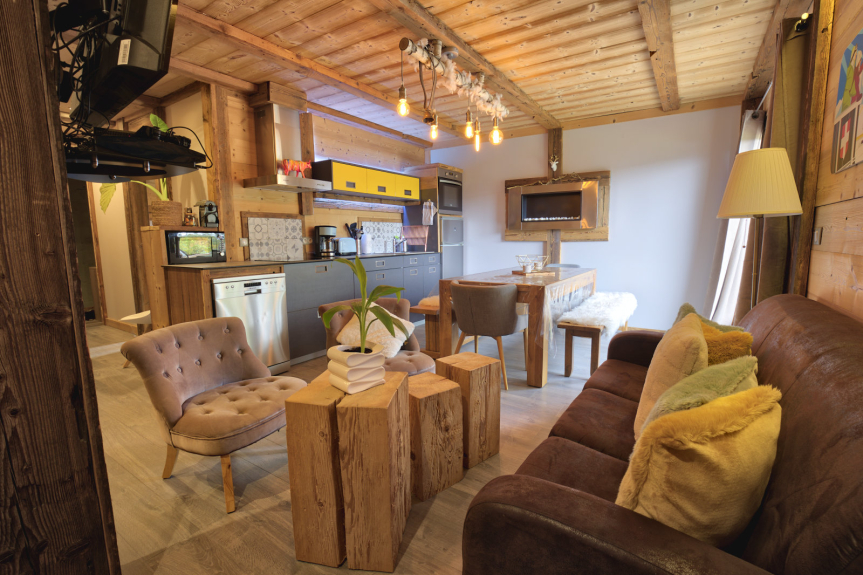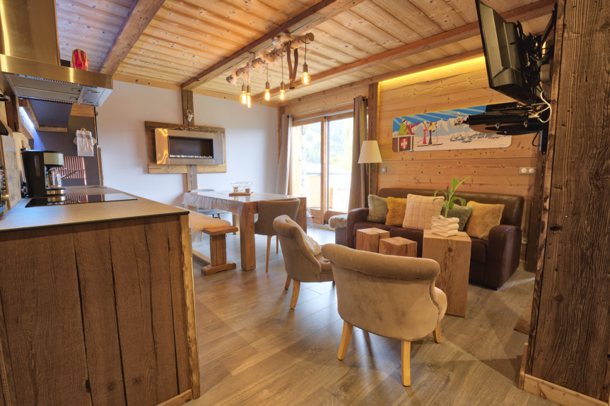 NUESTRA OPINIÓN: Muebles de calidad, todo confort con una cuidada decoración. Servicio de muy buena calidad, ropa de cama y baño incluida y limpieza al final de la estancia. Piso muy cálido en la carretera de los Grandes Alpes, cerca de Les Saisies, ¡para unas vacaciones de ensueño!