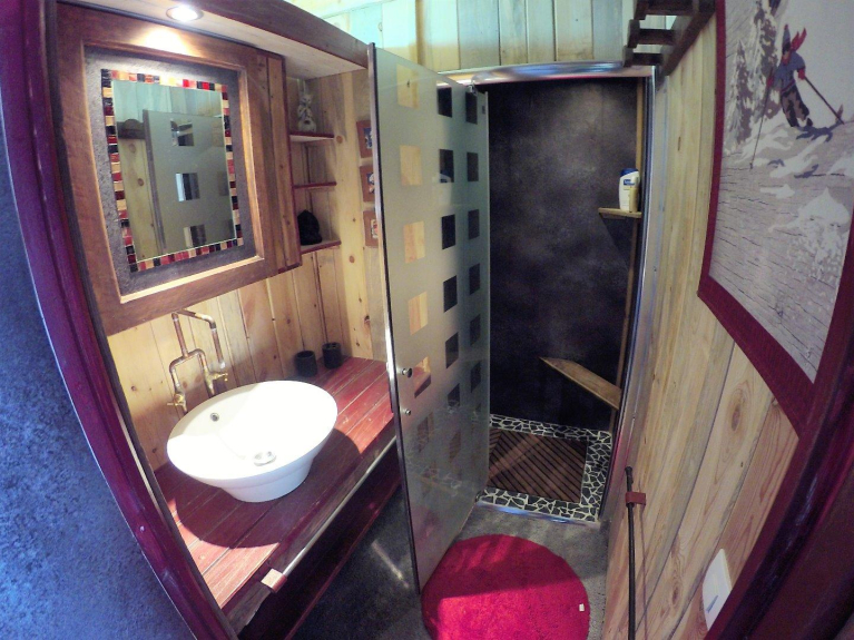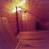 Espacio SAUNA (2x2m) bajo la vertiente del techo, por lo que no se puede estar de pie (acceso por una pequeña puerta de 1,20m)