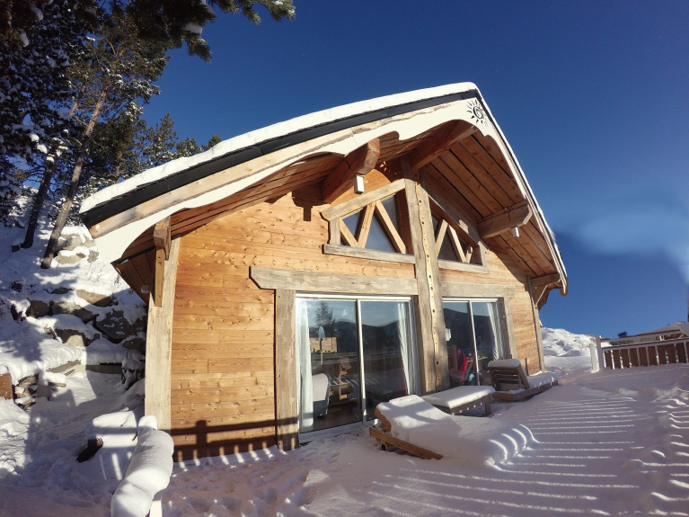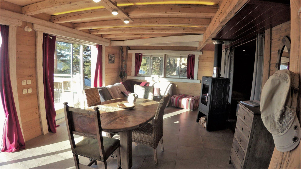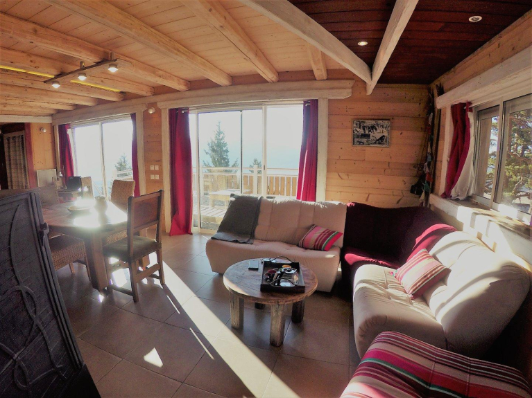 Venga a disfrutar de sus vacaciones en un chalet con ambiente de "madera vieja" y una magnífica vista.