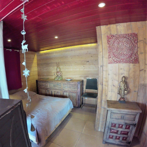 En la primera planta: 1 dormitorio con cama de 160 colchones de 20cm + baño con bañera, sin ducha (tazón tailandés)