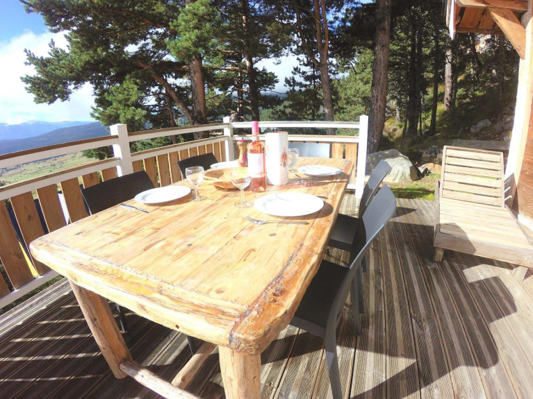 Cuando haga buen tiempo, tome sus comidas en la terraza (mesa para 8 personas) y disfrute de la vista del lago de Matemale.