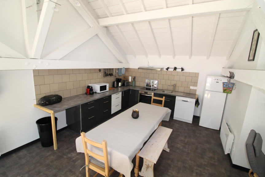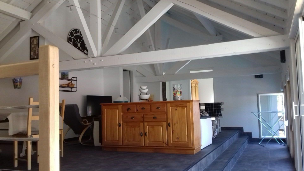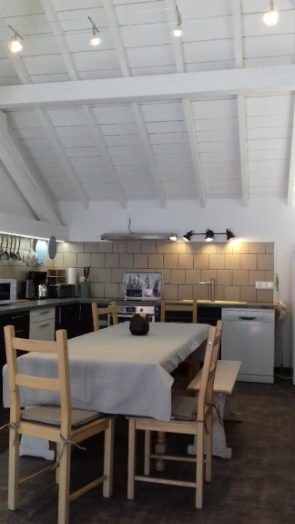 Este hangar (originalmente vinculado a mi actividad artesanal) se ha transformado en una casa rural de alquiler vacacional, gran armazón tradicional repintado en blanco, decoración industrial y confortable, casa rural muy luminosa que puede alojar de 4 a 9 personas en 4 habitaciones