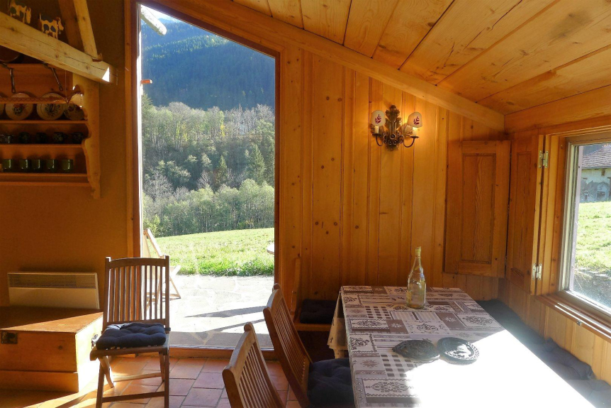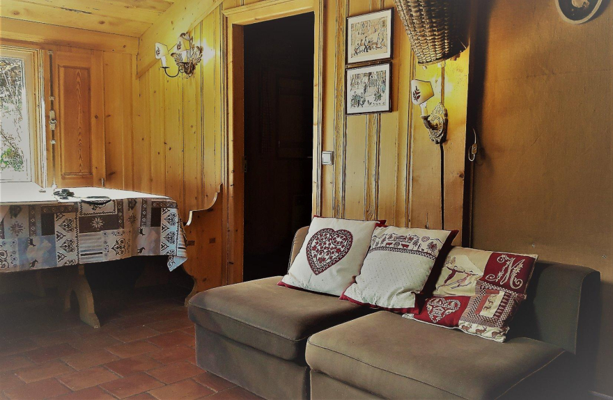 Espléndido emplazamiento frente a la montaña, sin vistas. Para los amantes de la madera: El chalet está construido íntegramente en alerce y abeto (¡60 m3!).