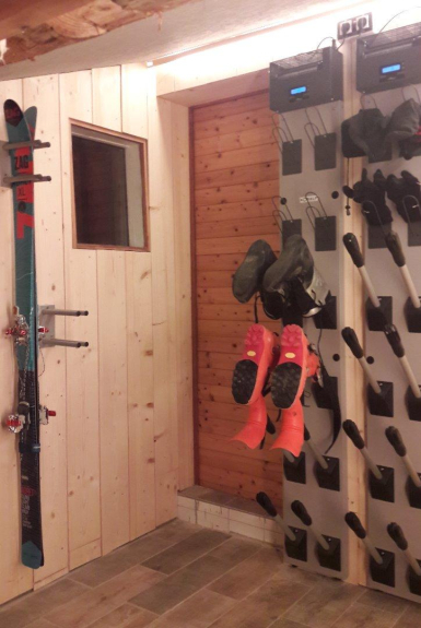 A partir del invierno 2018/2019: Una sala para guardar los esquís, secar las botas y los guantes, secar la ropa, con taquillas para las zapatillas.