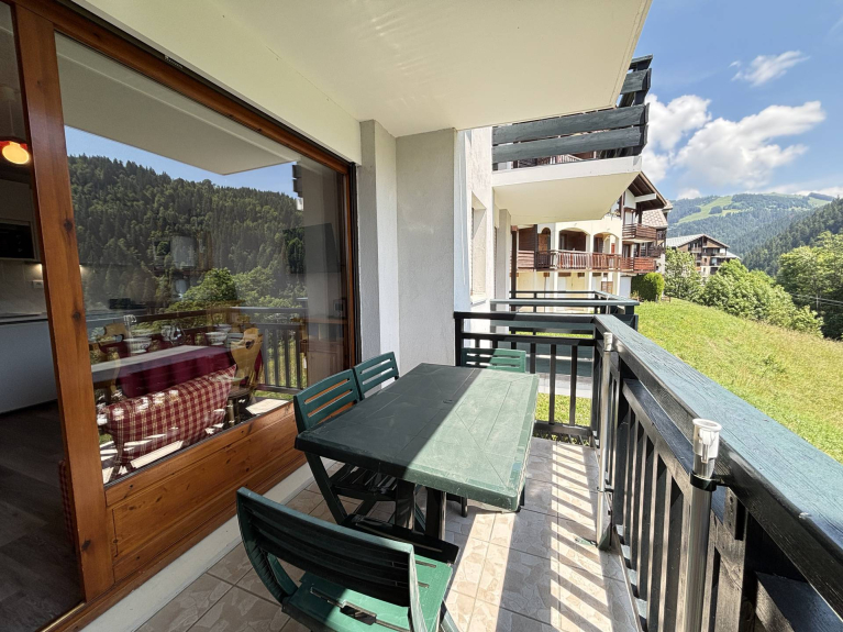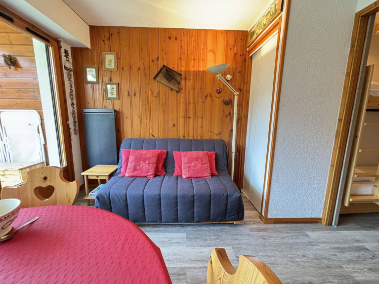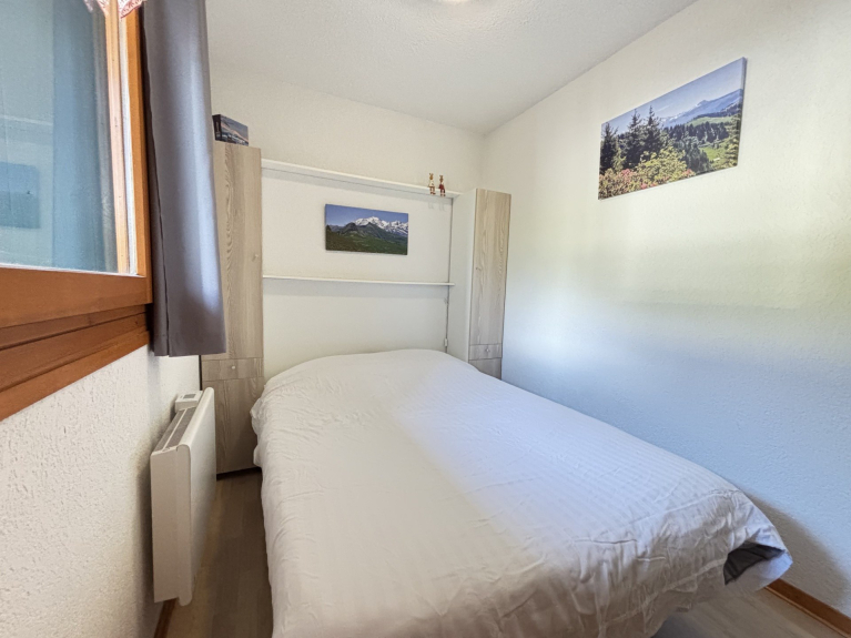 Agradable piso en la planta baja de esta residencia con una superficie de 26m². Disfrute del sol desde el balcón orientado al sur con una hermosa vista del Mont Charvin y del valle.