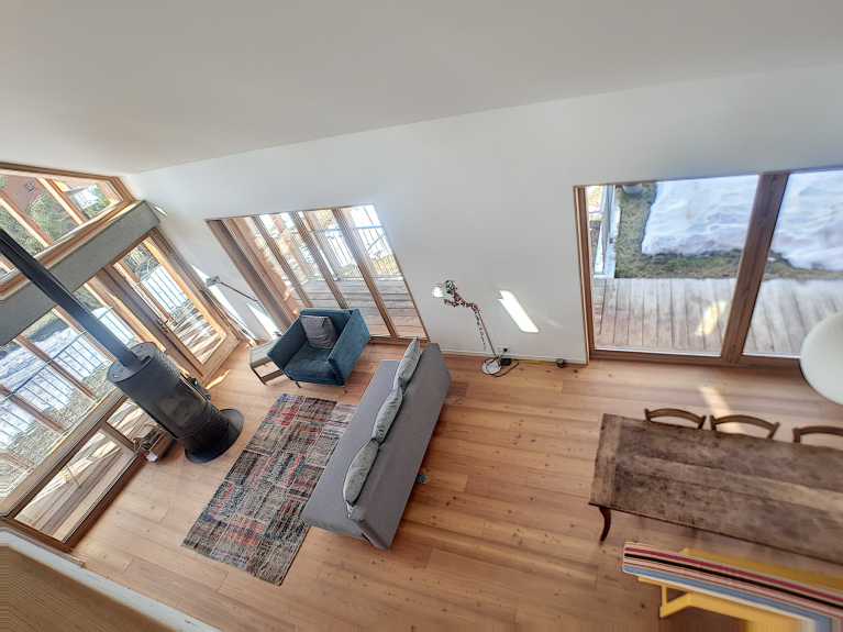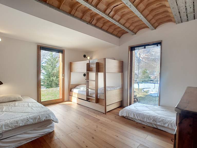 CHAL LE GYPAETE - Magnífico chalet de arquitecto con un gran jardín de 1250 m², compuesto por 3 dormitorios, gran salón con estufa de leña, cocina equipada, 2 baños y 2 aseos.
