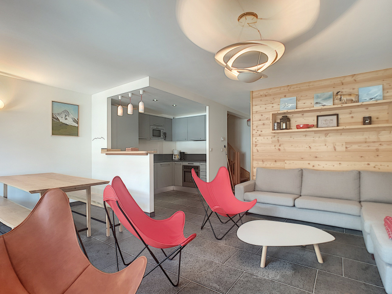 Instalaciones: WIFI, TV de pantalla plana, frigorífico, horno, microondas, vitrocerámica, cafetera de filtro, tostadora, hervidor de agua, molinillo de verduras, 1 plancha eléctrica, 1 máquina de raclette/pierrade, lavadero compartido con el otro piso equipado con lavadora, secadora, aspiradora, secador de botas de esquí, plancha y tabla de planchar.