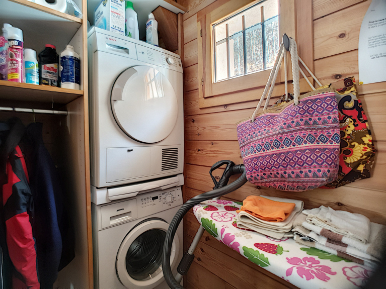 Equipamiento : Internet, TV, lavadora, secadora, lavavajillas, horno, frigorífico-congelador, aspiradora, plancha y tabla de planchar, cafetera de filtro, hervidor de agua, tostadora, microondas, estufa de leña en el salón, 2 máquinas de raclette, 2 máquinas de fondue eléctricas, hammam, 1 plancha eléctrica, placa de 4 fuegos, reproductor de DVD, barbacoa y muebles de jardín.
