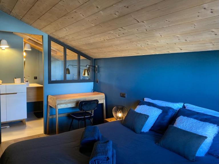 - 1 suite principal con gran ducha, wc, zona de despacho y vistas a la montaña
