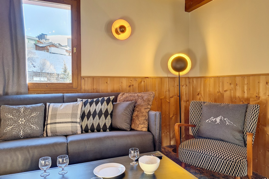 Bonito y amplio piso de 5 habitaciones en dúplex de 85 m² para 10 personas. Se encuentra en la 2ª planta de la residencia y tiene un balcón al suroeste. (Cristaux 1)