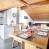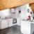 Cocina abierta equipada con 4 placas de inducción, nevera, horno, microondas, lavavajillas.