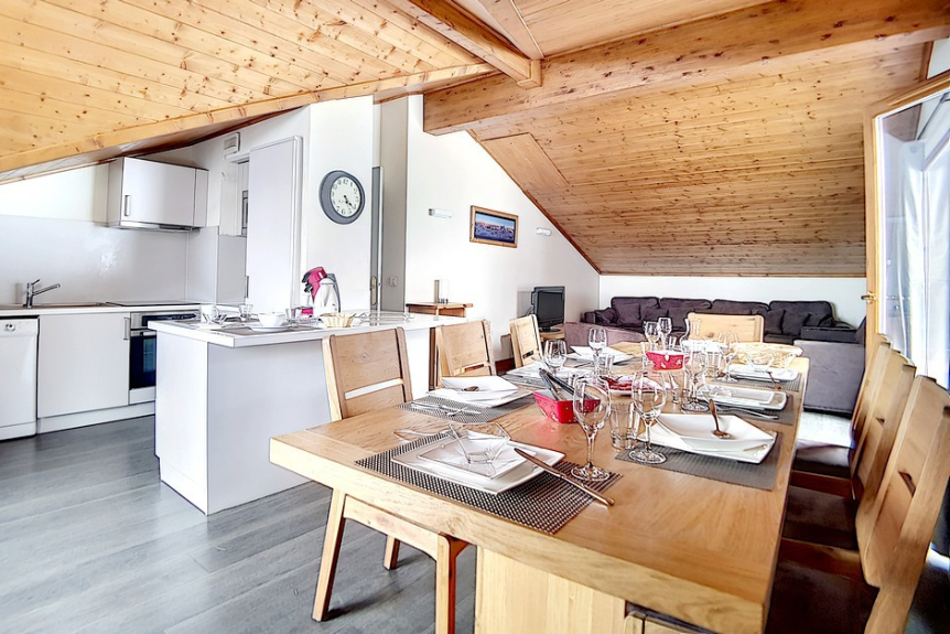 Precioso y amplio piso con 4 habitaciones de 130 m² para 10 personas. Se encuentra en la 3ª planta (último piso) de la residencia y tiene dos balcones al sur y al este. (Cristaux 2)