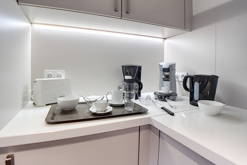 Máquina de café Senseo y tradicional, hervidor y tostadora.