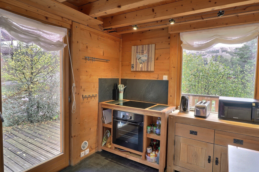 Tiene una vista sin obstáculos de las montañas y las pistas, dos grandes terrazas donde se puede comer al sol.