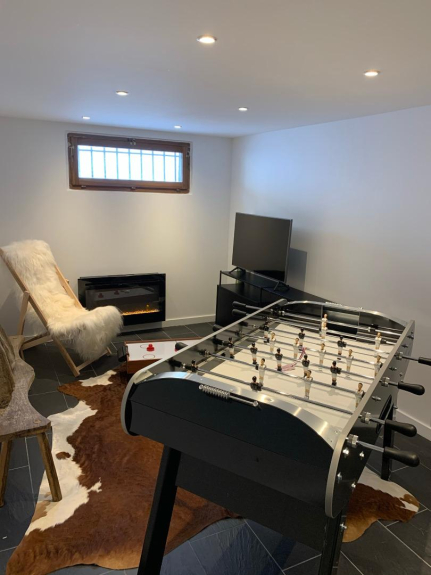 Sala de esquí y sala de juegos.