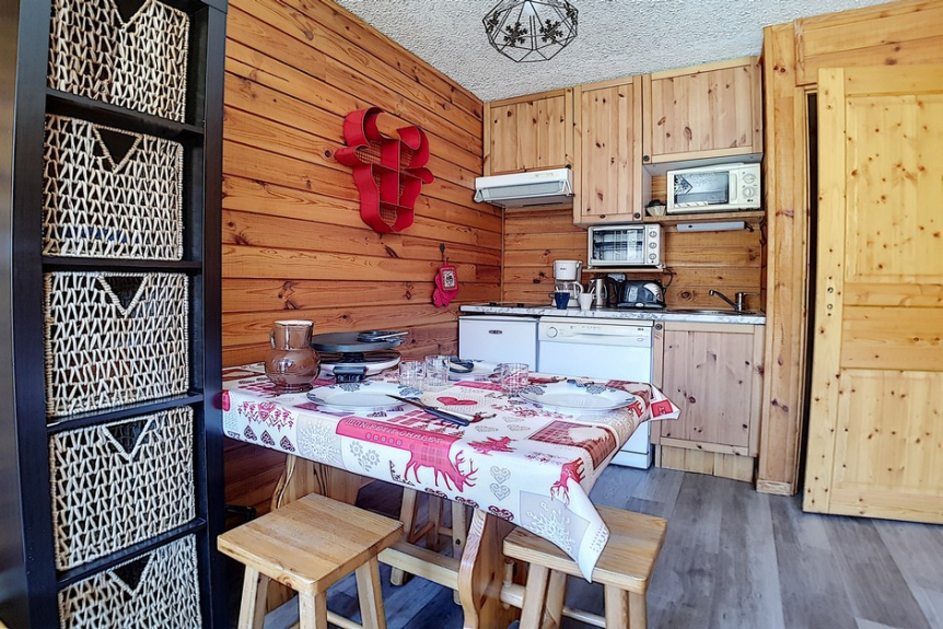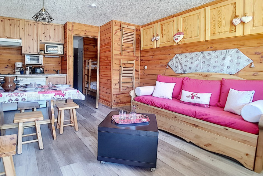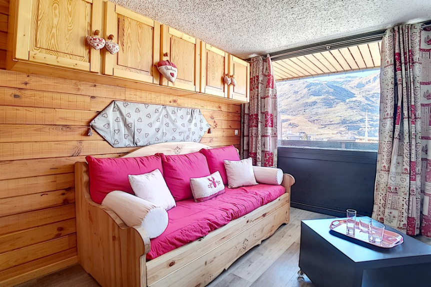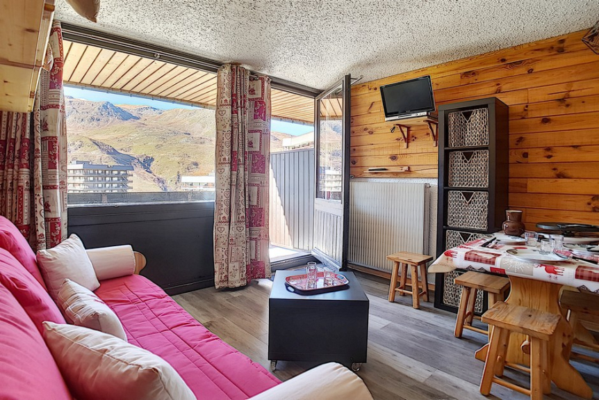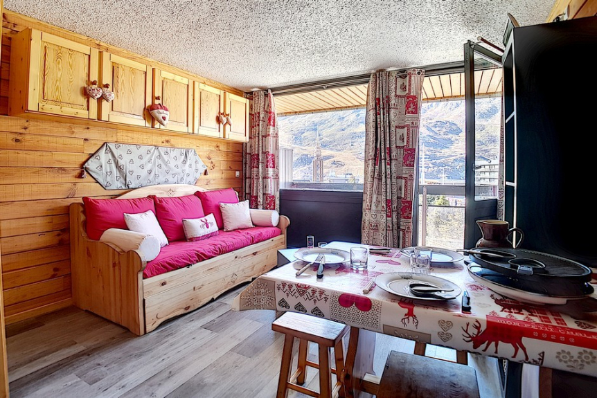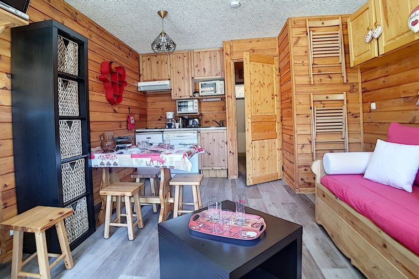 Precioso estudio totalmente renovado, con una superficie de 22m² para 4 personas. Situado en la 2ª planta de una residencia cerca de los remontes y del punto de salida de las FSE, tiene un balcón orientado al sur.