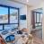 Cocina integrada con horno, microondas, cafetera, hervidor, 4 placas de cocción, campana extractora y lavavajillas
