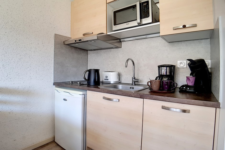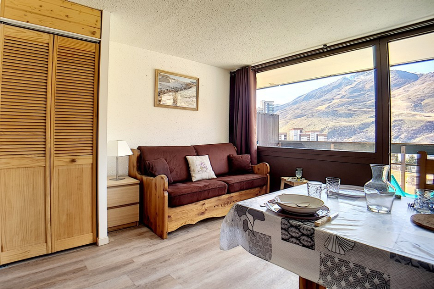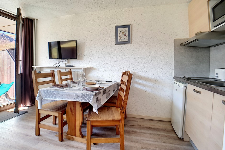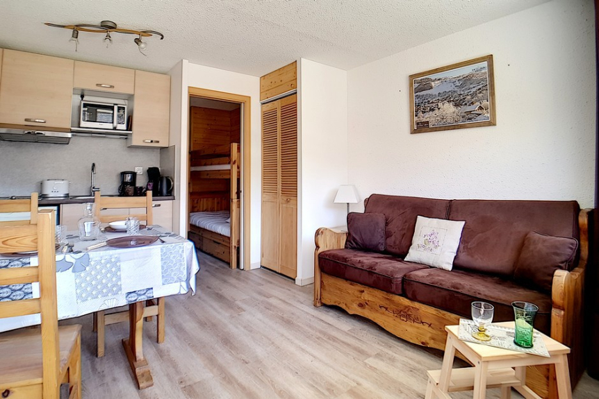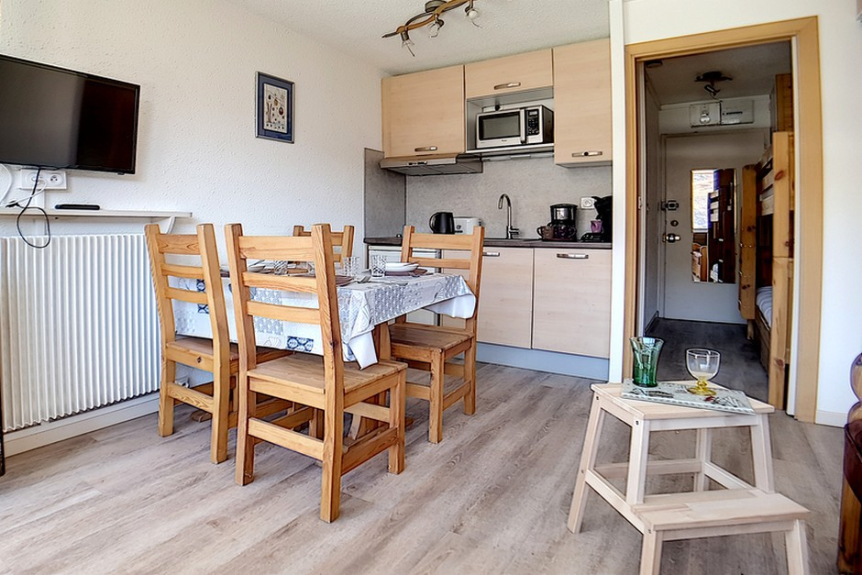 Hermoso estudio completamente renovado, con una superficie de 20m² para 4 personas. Situado en la 6ª planta de una residencia cerca de los remontes y del punto de salida de las FSE, tiene un balcón orientado al sur.