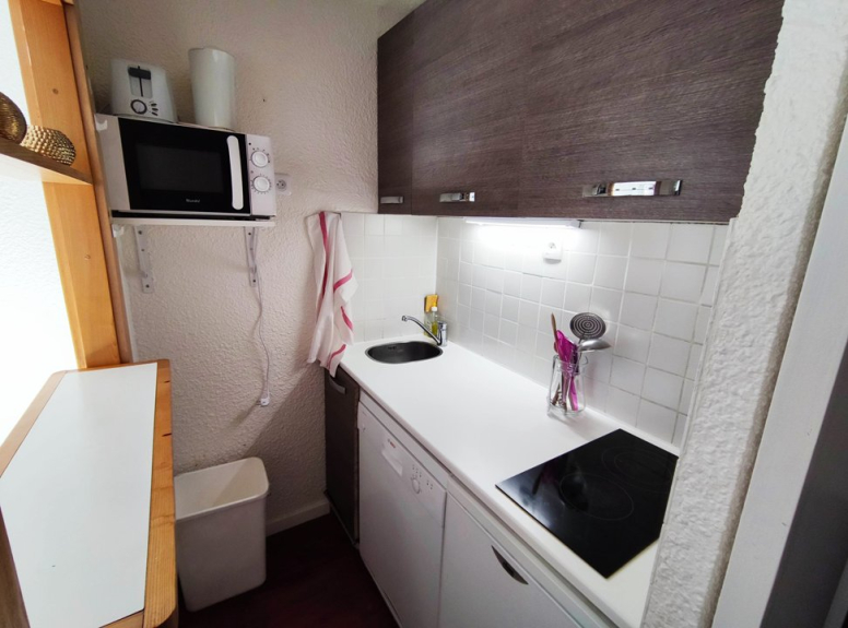 Estudio orientado al suroeste, acogedor y muy agradable, 1ª planta con balcón, situado en un edificio de chalets en el corazón del Hameau (lado sur de la estación), a 15 minutos a pie del centro de la estación.