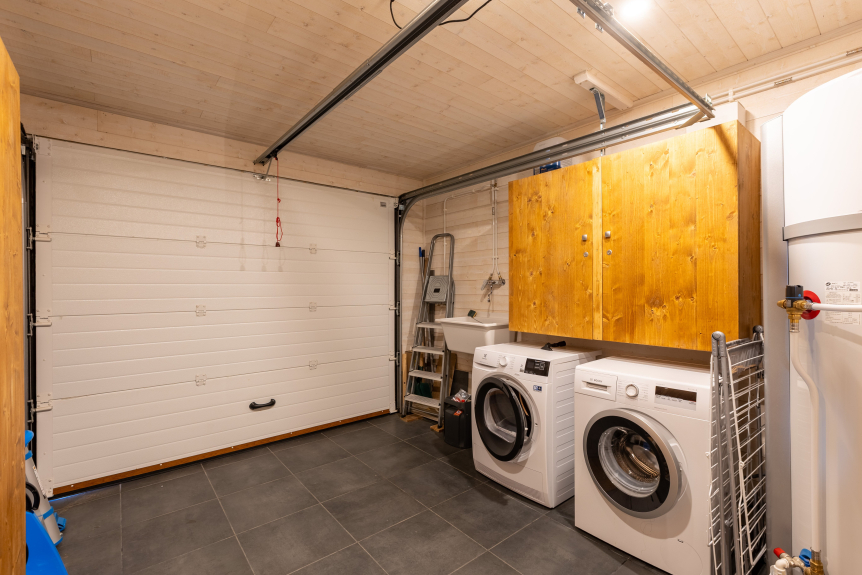 Planta baja: 3 dormitorios, uno de los cuales es el dormitorio principal con cuarto de baño privado (lavabo y ducha), un cuarto de baño con ducha italiana, un aseo separado y un garaje con lavadora y secadora.