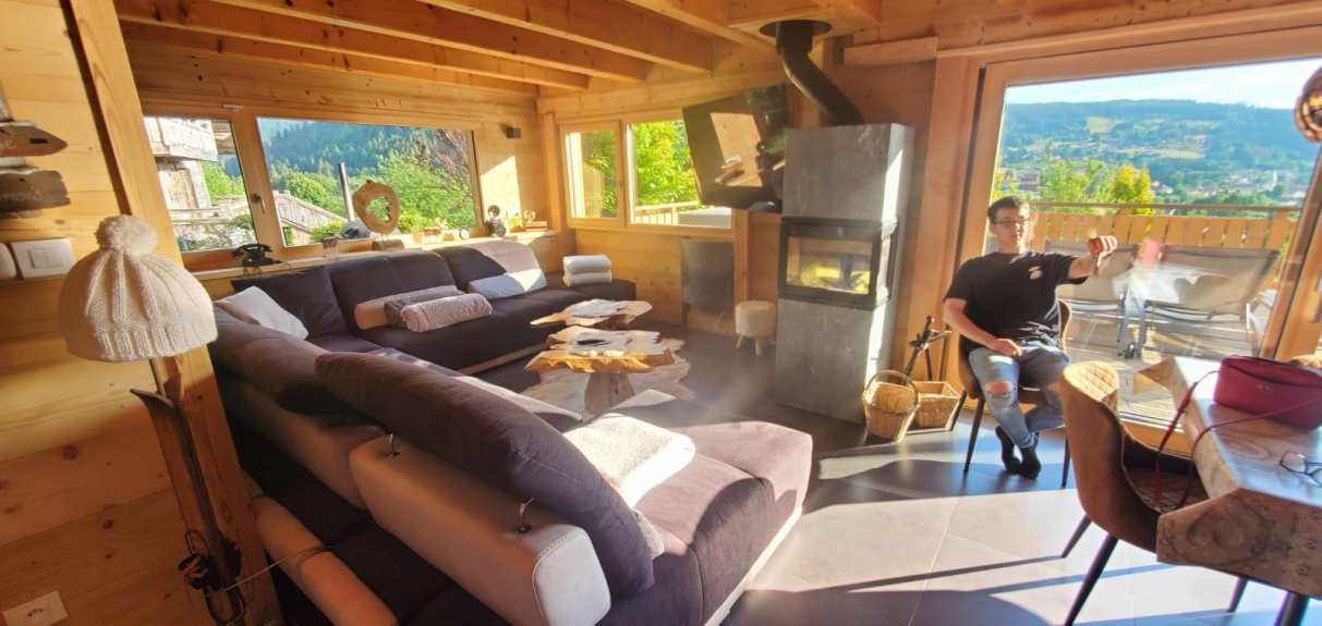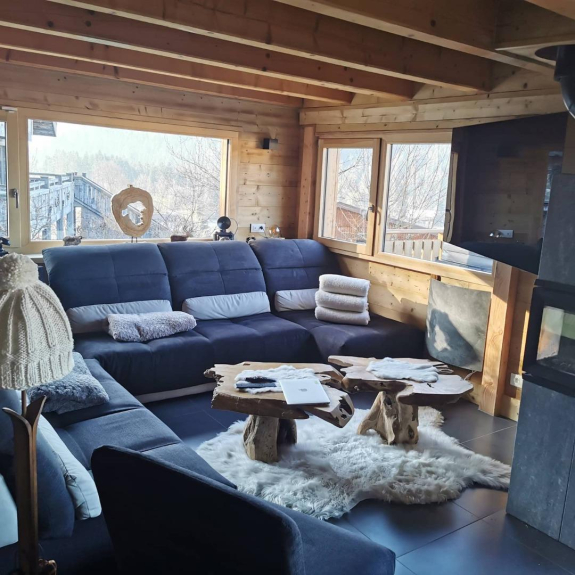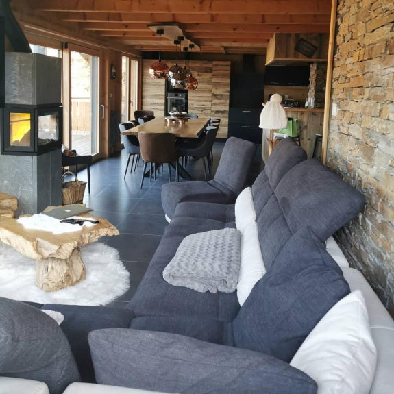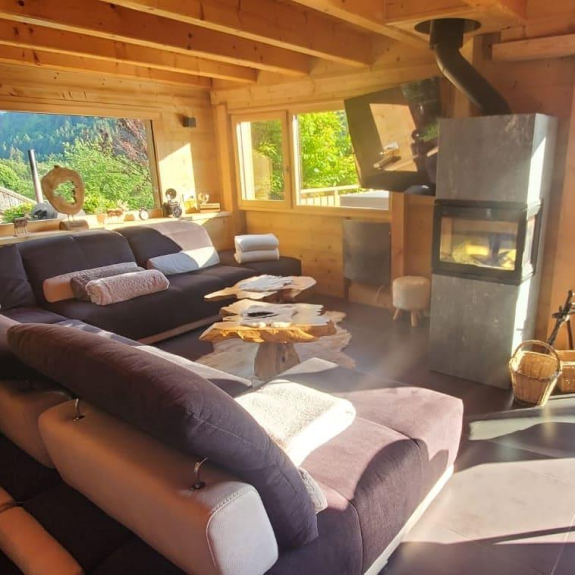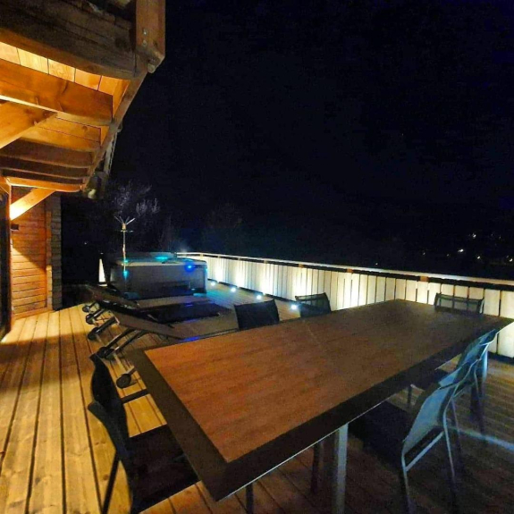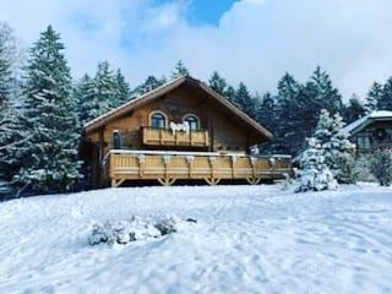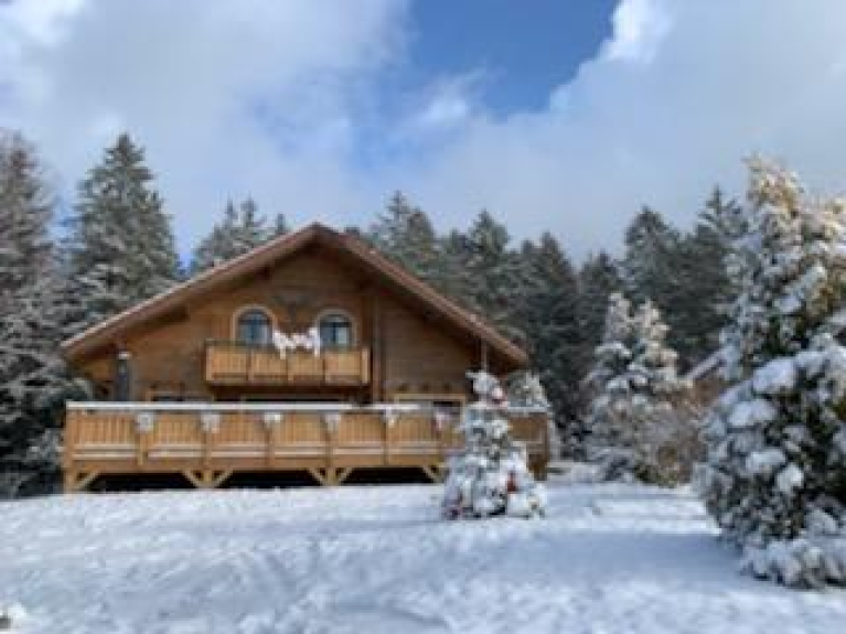 Un chalet de 190 m2 con una terraza de 50m2 orientada al sur con una vista clara y en el borde del bosque,