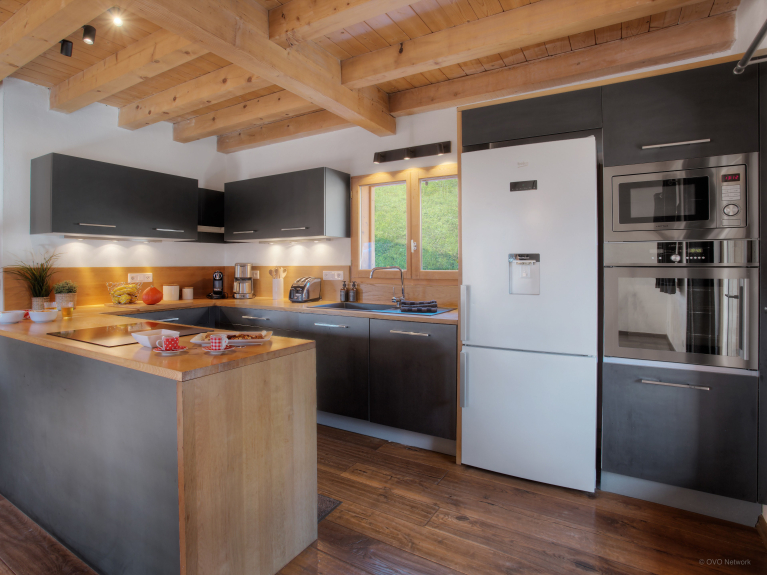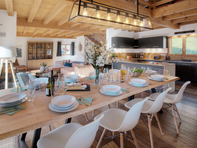 El aspecto tradicional de este hermoso chalet esconde un interior elegante y con estilo. Es el alojamiento perfecto para unas vacaciones de montaña serenas y sin estrés.