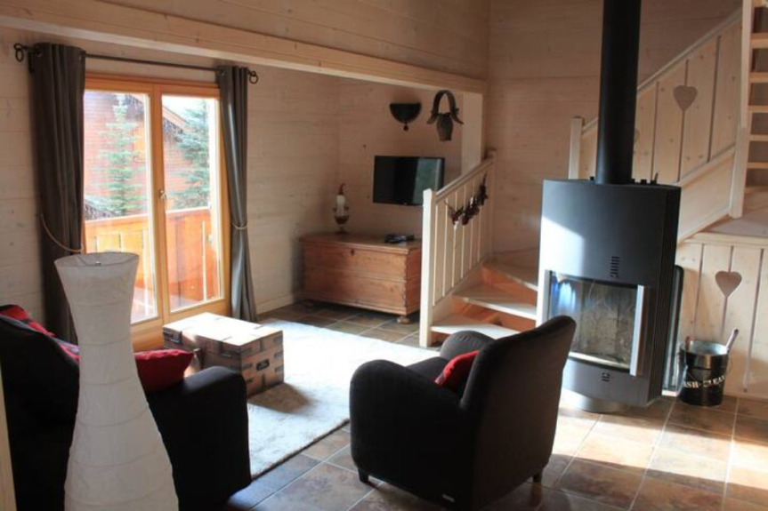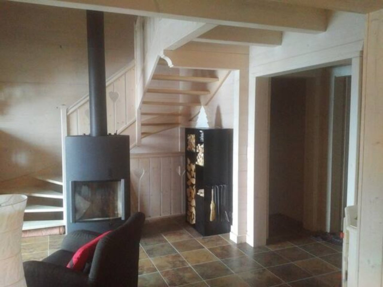 Chalet tradicional 125m2 con 3 dormitorios arriba con cuarto de ducha y WC. En la planta baja: 1 suite principal con cuarto de baño y WC. Una gran sala de estar (salón / comedor), una cocina totalmente equipada con trastero, WC y armario. En el sótano, un pequeño garaje y guardaesquís.