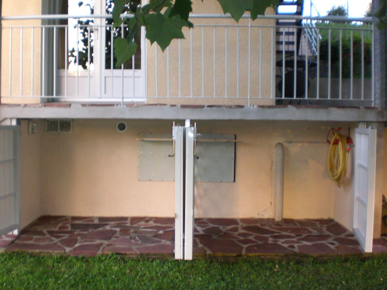 Cobertizo para bicicletas: cierre individual y seguro con grifo y chorro de agua exterior para lavar las bicicletas.
