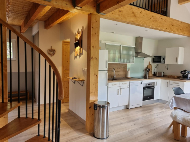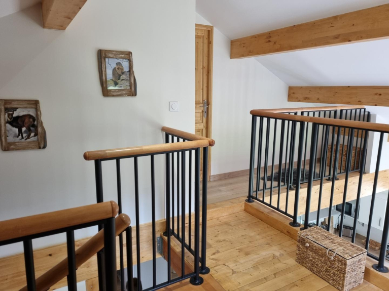 Nuevo chalet de 90 m² con altillo, moderno y confortable, para 6 a 8 personas, situado en la carretera de Archaz al borde de la pista roja 'Edelweiss' que le permite una salida y una vuelta en esquí. Ambiente muy tranquilo y pacífico. Ideal para unas vacaciones en familia o con amigos en un entorno precioso. Tres plazas de aparcamiento delante del chalet. Sala de esquí en el garaje.
