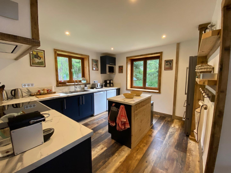 Las 3 plantas han sido completamente renovadas: salón de 40m², pequeño salón de 15m², 8/9 dormitorios. Diseñado para unas vacaciones deportivas en familia o con amigos, donde se privilegia la calma y la convivencia.