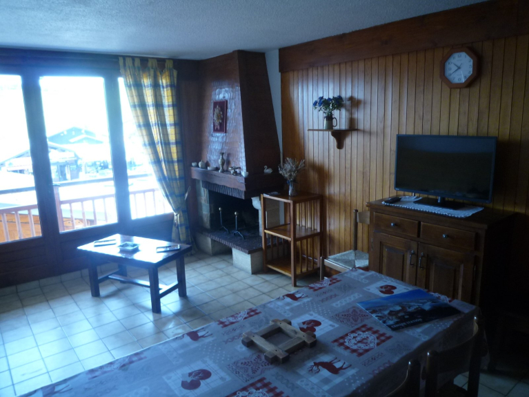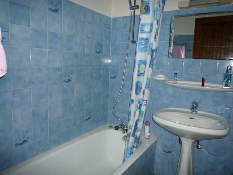 Piso en 1ª planta orientado al sur. 52M2. 1 habitación con 1 cama doble. Rincón montaña con 2 literas 1 persona + 1 cama 1 persona. Cocina-salón de 26m2 con 1 sofá cama para 2 personas (colchón grueso 20cm) + 1 cama nido para 1 persona. Cuarto de baño con ducha sobre bañera de 1,60m. WC separado. Balcón, chimenea, wifi, TV 82CM, BT, fregadero doble iNox. 4 placas vitrocerámica, horno + microondas. Calentador de agua 200L.