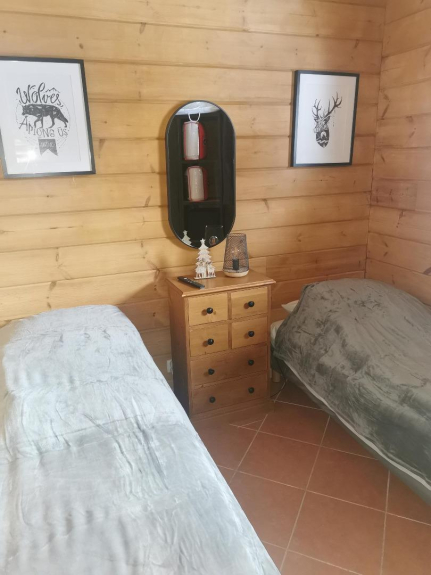 - en la planta baja 2 dormitorios, uno con una cama de 140 cm y el otro con 2 camas individuales.