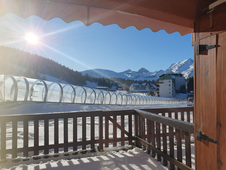 El piso está magníficamente equipado y orientado al sur con una gran terraza frente a las montañas.