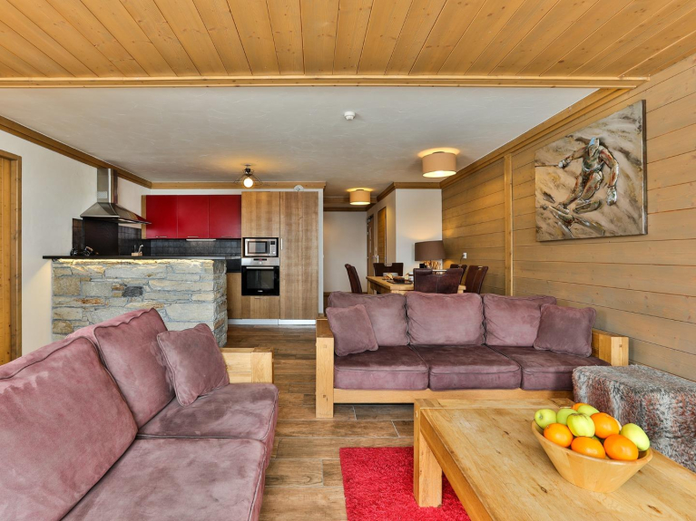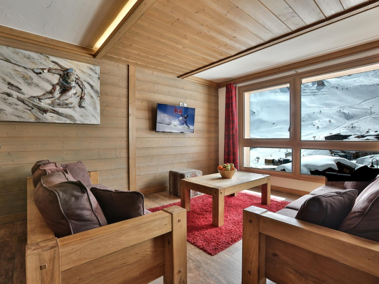 Idealmente situado en la zona de Almes de Tignes Le Lac, este piso chalet de reciente construcción es un ejemplo perfecto de estilo saboyano tradicional y moderno.