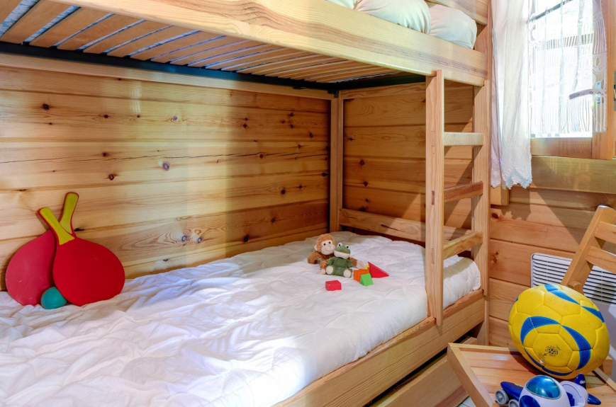 Bleuet : Casa rural para 4 personas, en el Parque Residencial de Ocio L'ESCAPADE, en Estavar (Pirineos Orientales, Occitania). Salón con cocina americana equipada, 1 dormitorio con cama de matrimonio, 1 dormitorio con literas, cuarto de ducha. TV, acceso wi-fi. Los precios no incluyen el consumo de electricidad ni la tasa turística. Se admiten animales de compañía con condiciones.