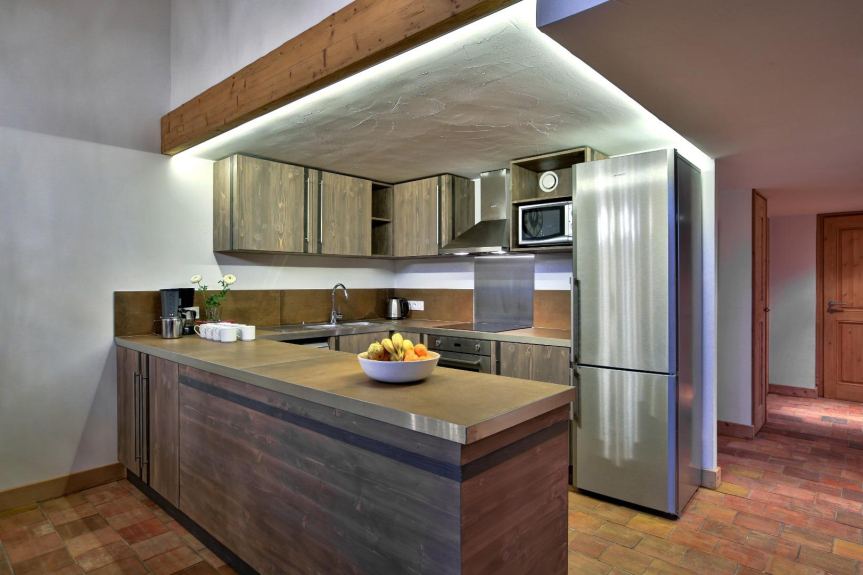 La cocina/comedor está equipada con un horno eléctrico integrado, una placa de inducción de cuatro fuegos, un gran frigorífico-congelador, un gran lavavajillas, un microondas, menaje para hacer té/café, una mesa de comedor y 8 sillas.