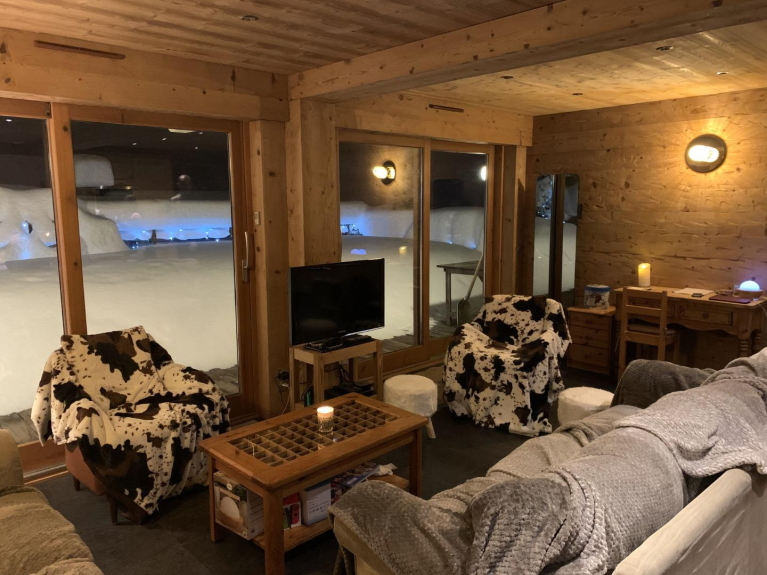 En la gran terraza, las mesas y sillas permiten comer al aire libre, incluso en invierno. Hay dos taquillas para esquís a su disposición. Se puede solicitar un garaje cubierto privado.