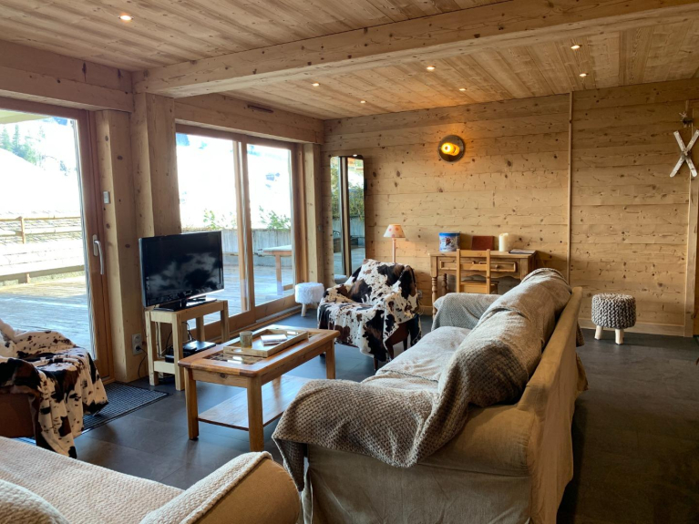 Este piso de 101 m² está situado en el corazón de la estación de Chinaillon y a pie de pistas, en la residencia Pistes du Soleil.