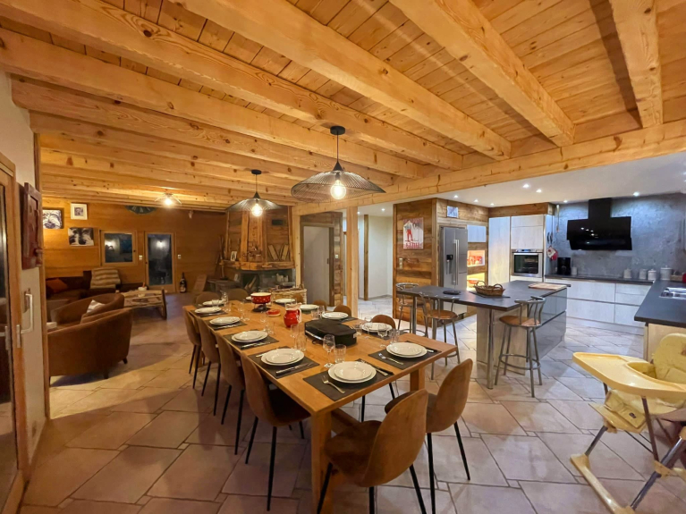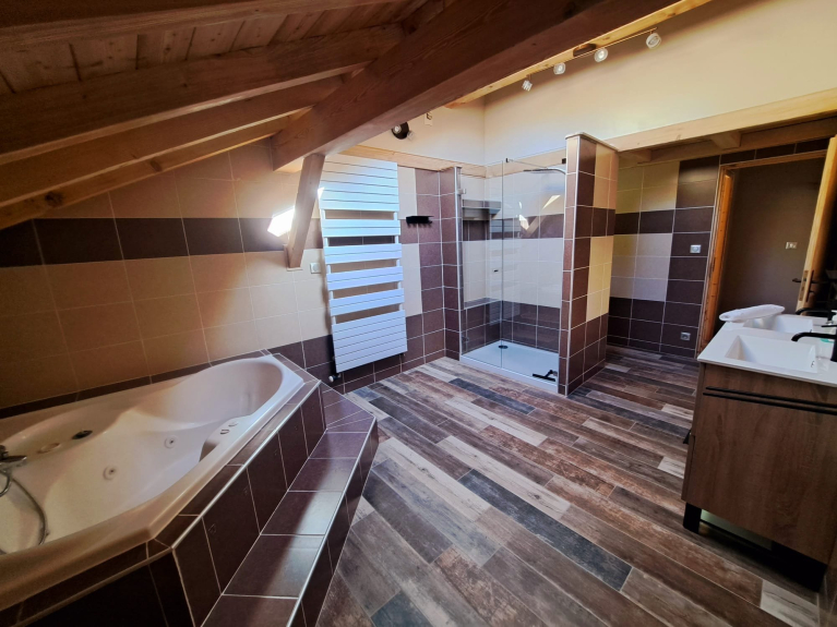 Acogedoras salas de estar con fuego de leña (leña disponible), cocina totalmente equipada, 3 habitaciones con baño privado y otras 2 con baño compartido. Numerosas zonas de descanso disponibles (sala de juegos, rincón de lectura, sala de cine en proceso de finalización). Un jardín rodea el chalet. Terrazas orientadas al sur y al oeste y una pérgola para disfrutar del sol a cualquier hora del día.