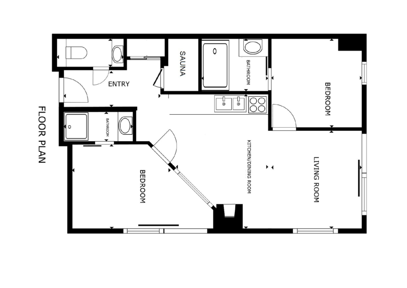 2 habitaciones, 2 cuartos de ducha, estufa de leña, cocina equipada,